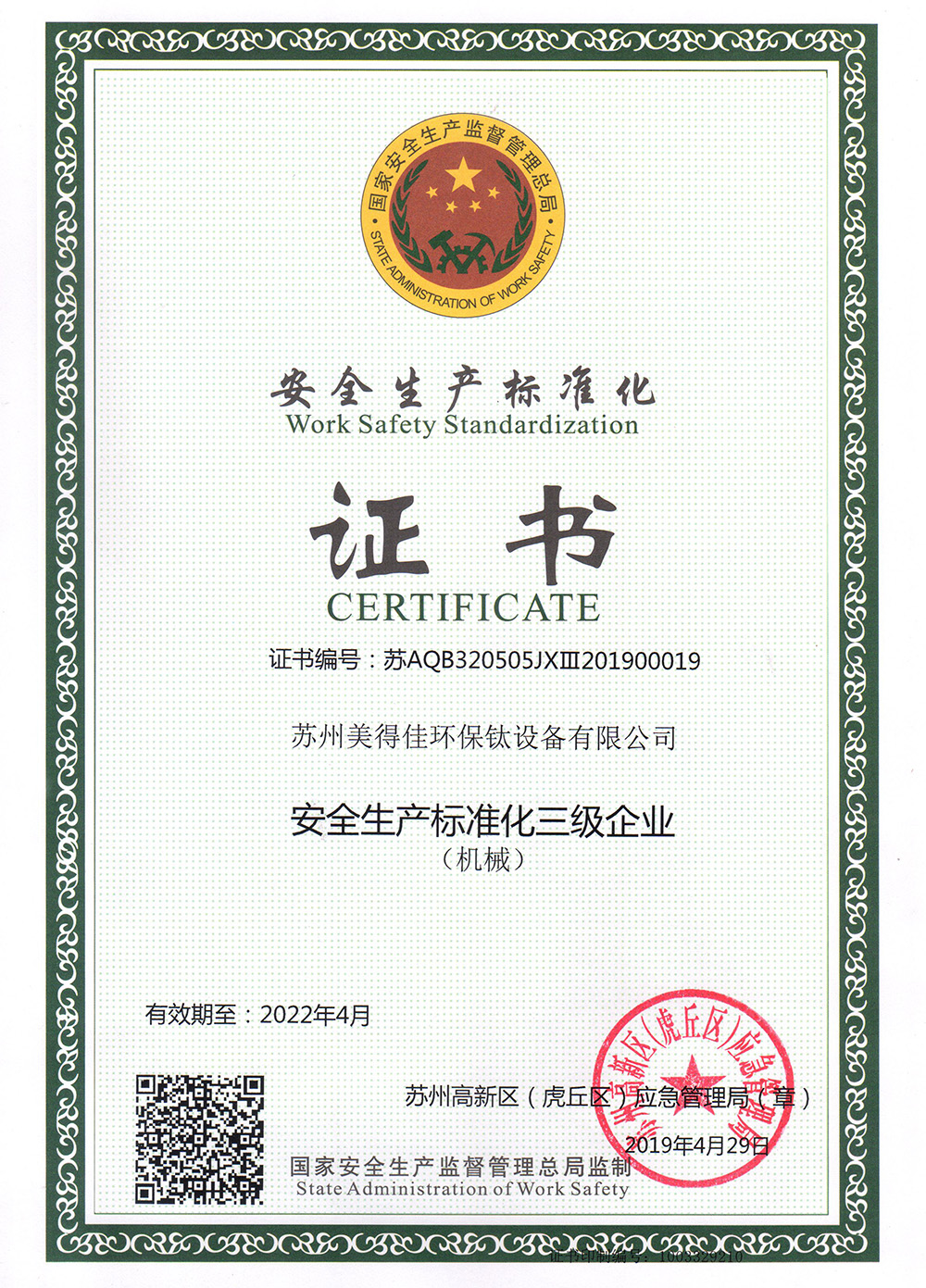 安全生產(chǎn)標(biāo)準(zhǔn)化證書